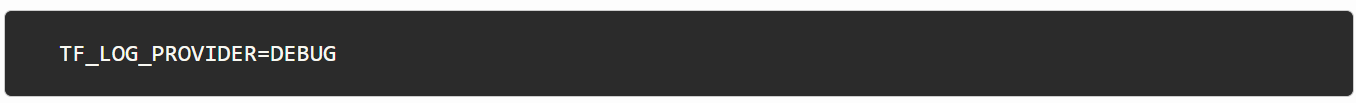 您可以使用 或 来记录 Terraform 本身, TF_LOG 或者 使用 来记录TF_LOG_CORETerraform 和所有提供者 TF_LOG_PROVIDER。您可以将日志设置扩展到只有一个特定的提供程 TF_LOG_PROVIDER_