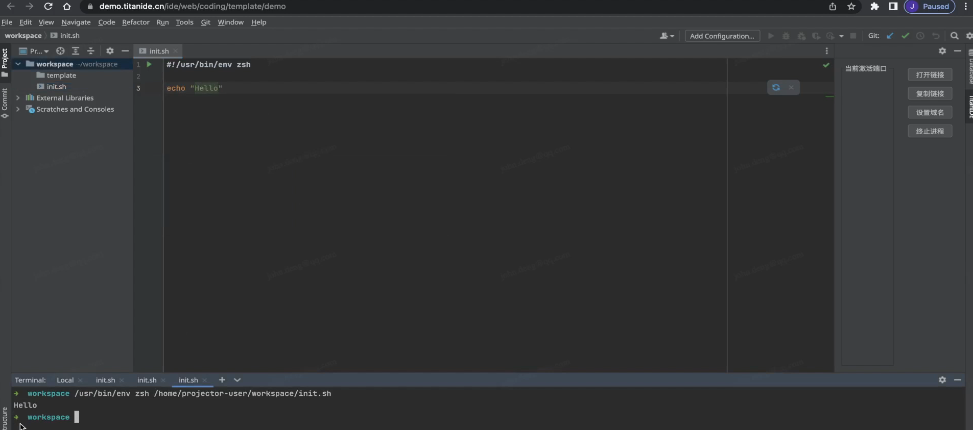我们写好脚本之后,就可以在 [TitanIDE] 上直接运行,并且立即看到结果,等模板调试完毕,将调试好的脚本复制到一个新的模板即可。