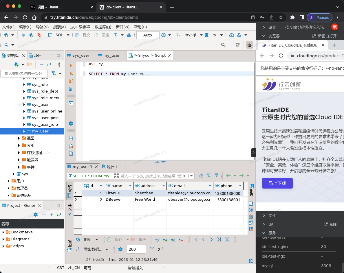 根据心理学家的发现,爱上一个人,仅需要8.2秒,而喜欢一个人,只需要0.4秒。因为眨眼睛的时间是0.2秒,而大脑做决定的时间也就0.2秒而已,也就是一眨眼、一秒内的时间就足以产生最初始的心动。基于此,TitanIDE 和 DBeaver 可以说是一见钟情,接下来我们进一步了解一下这两位主角。